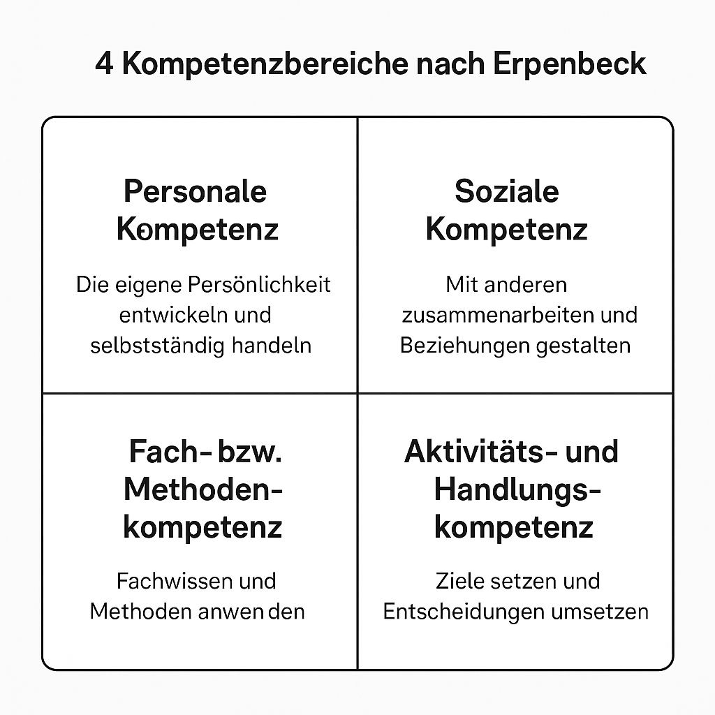 Erpenbeck/Heyse | Kompetenzdiagnostik, Grundlagen seit 1990er-Jahre | Personale Kompetenz; Aktivitäts- und Handlungskompetenz; Fachlich-methodische Kompetenz; Sozial-kommunikative Kompetenz | Theoretische Fundierung und Kategorisierung grundlegender Kompetenzdimensionen | Ganzheitliche Einordnung individueller Kompetenzen |